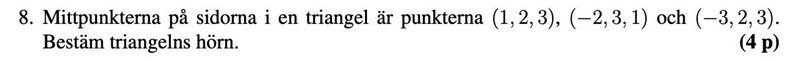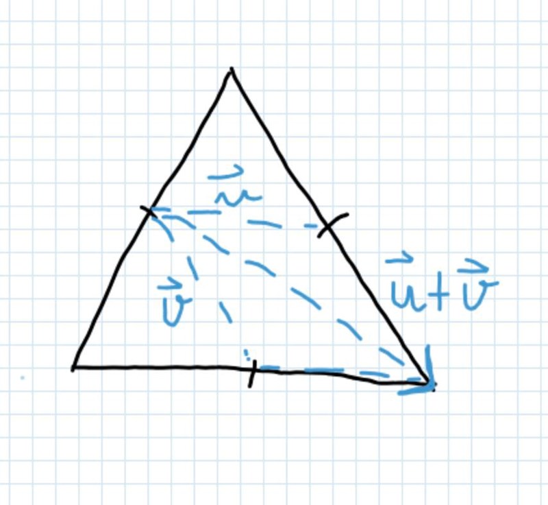 Om du har något bra argument för att det blir ett parallellogram är det dock inte du är ute efter utan isåfall vill du få reda på vektorn där är vektorn som går från origo till punkten på mitten av triangelns vänstra sida i din figur