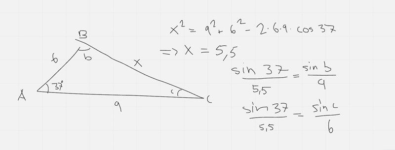 Jo men jag förstår inte det. Blir det inte b= sin c gånger 5,5/ sin 37?