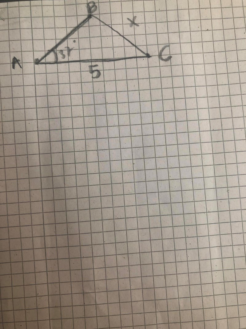 I triangeln ABC är ^A = 37, sidan AC = 5 och sidan BC = x cm