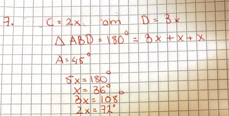 Man kan notera att svaret blir detsamma även om vinkel BAD inte är x.