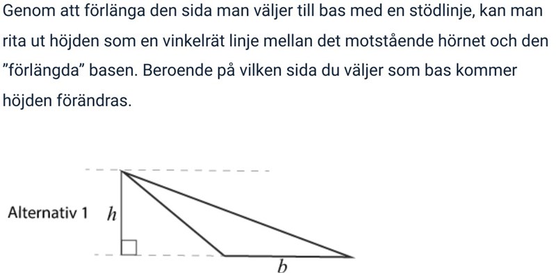 på andra bilden ser du hur dem har visat att man ska göra för att förlänga en triangels bas. vad är meningen med det om man inte ska använda sig av det sättet för att räkna ut arean?