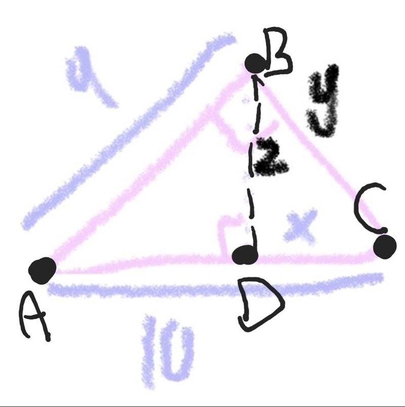 enligt pythaogras sats är (10 - x)^2 - z^2 = 9^2