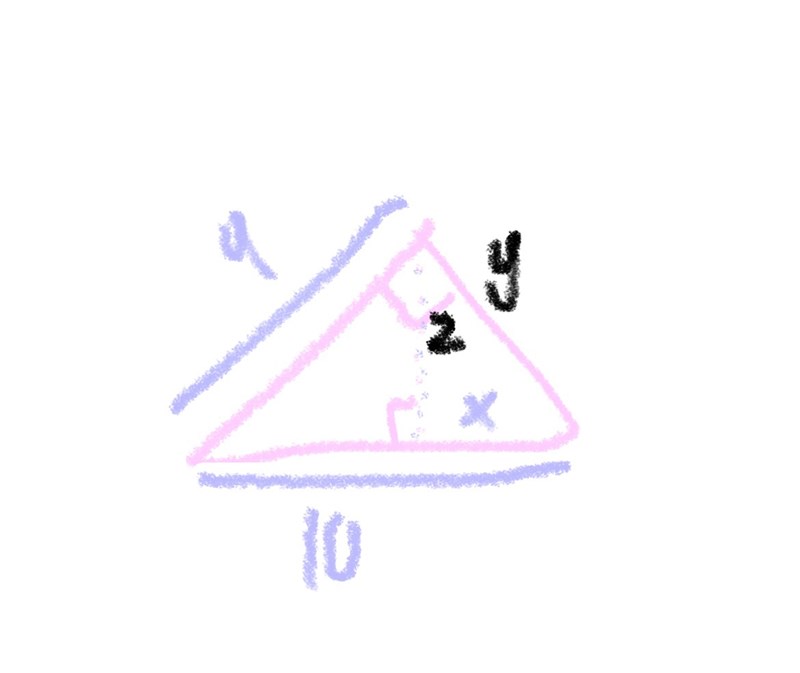 målet är att räkna ut vad x är. jag tyckte att det var enklast att räkna ut vad y är först. eftersom att den är rätvinklig kan jag använda mig av pythagoras sats, (100 - 81)^1/2 = y = (19)^1/2