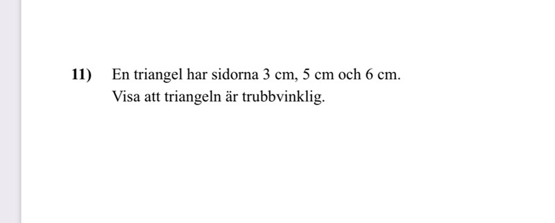 Med hjälp av cosinussatsen kan man beräkna en vinkel om man känner till alla tre sidornas längd.
