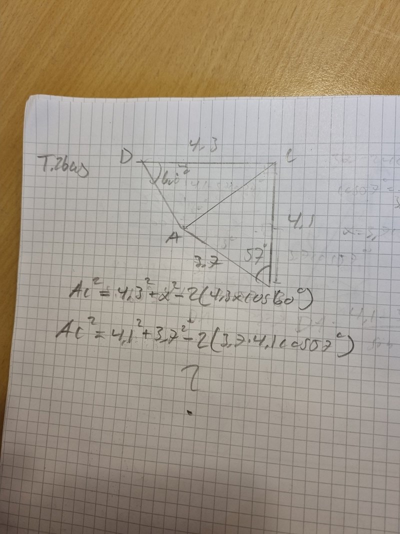 Har skrivit upp en ekvation för att lösa ut AD i uppgiften under. Problemet är att den översta ekvationen endast får negativa lösningar. Alltså blir lösningen på ekvationen (om du sätter Ac^2=Ac^2) två negativa tal. Jag hittar inga fel i de heller.