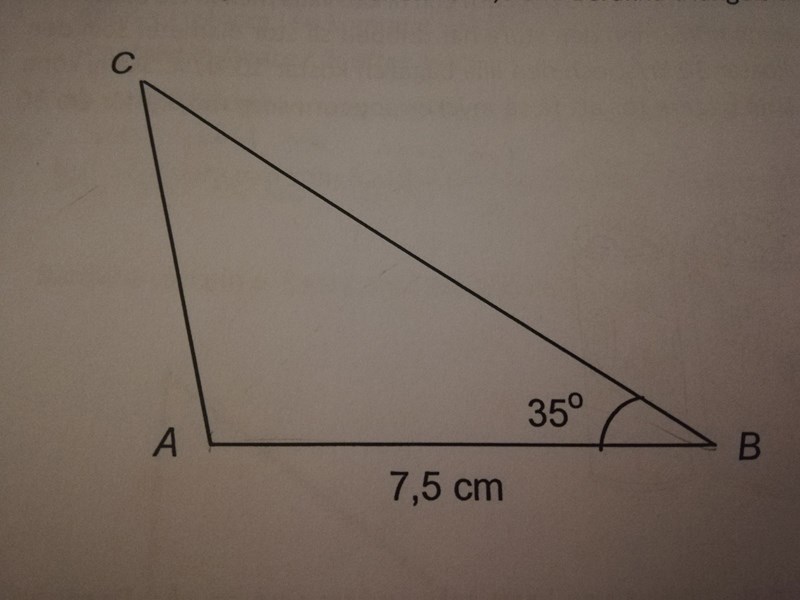 Fråga: Höjden mot sidan AB är 6,5 cm. Beräkna triangelsidorna AC och BC.