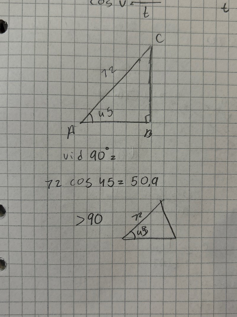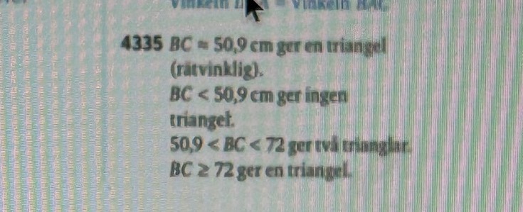 Fall 4: sidan som är motstående till vinkeln 45 grader är längre än höjden men kortare än 72 cm.