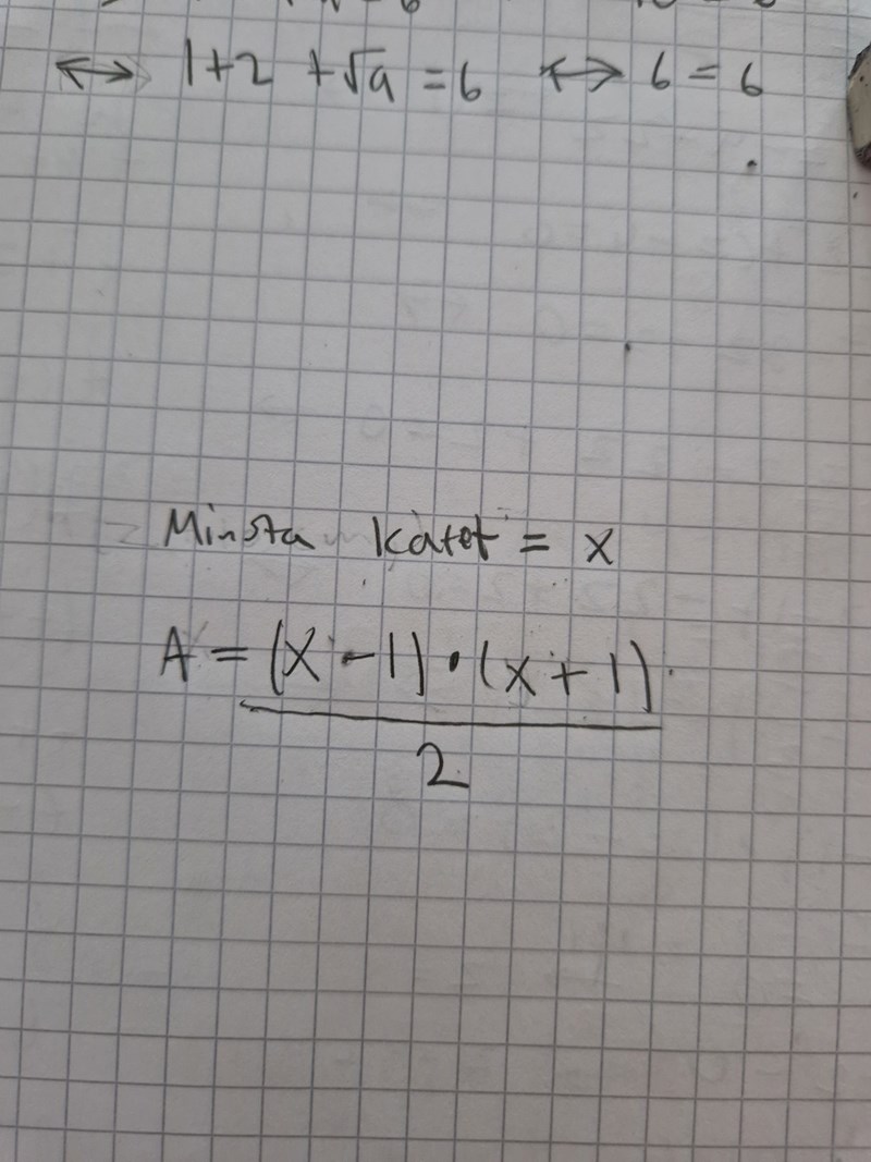 Med hjälp av den kan du nu skriva ett uttryck för triangelns area och förhoppningsvis även hitta något annat användbart kring x.