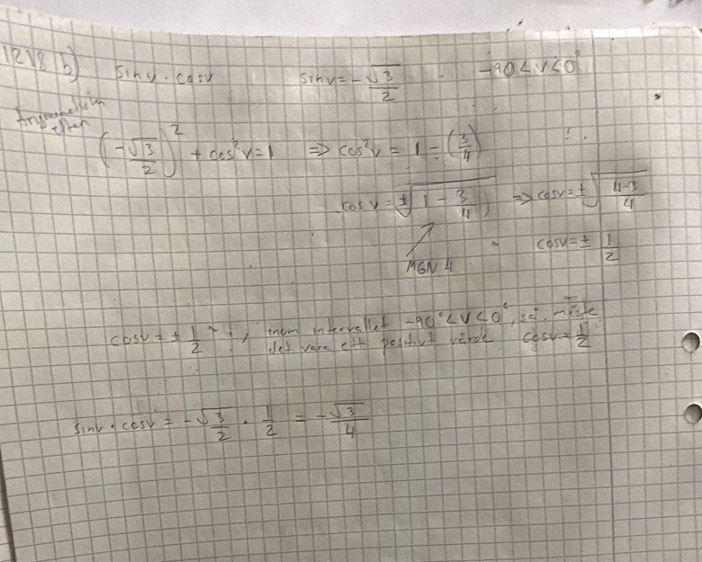 Så nu har man både sinv och cosv, därav kan man bara sätta in de i tanv=(sinv)/(cosv).