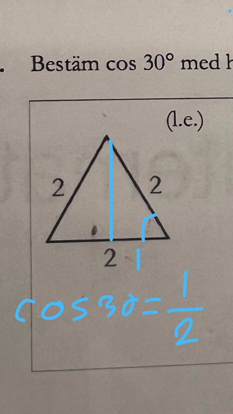 Det är sin 30o som är 1/2 (bortre katet/hypotenusa).