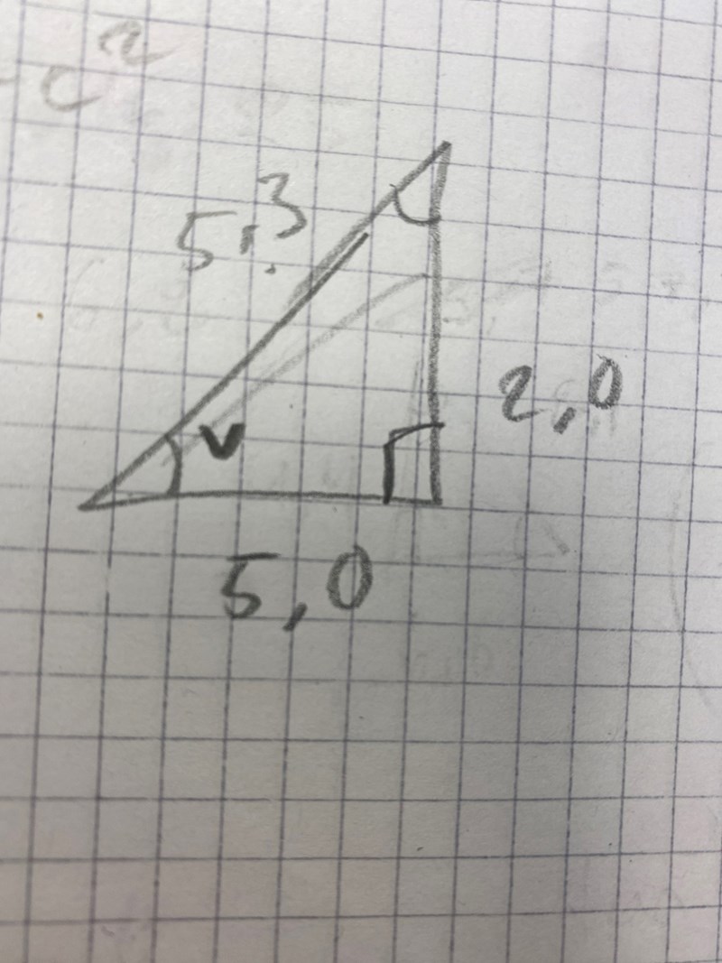 Hypotenusan är ungefär lika med 5,38516, du har räknat med 5,3 och då blir det fel!