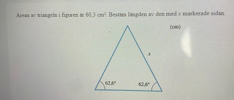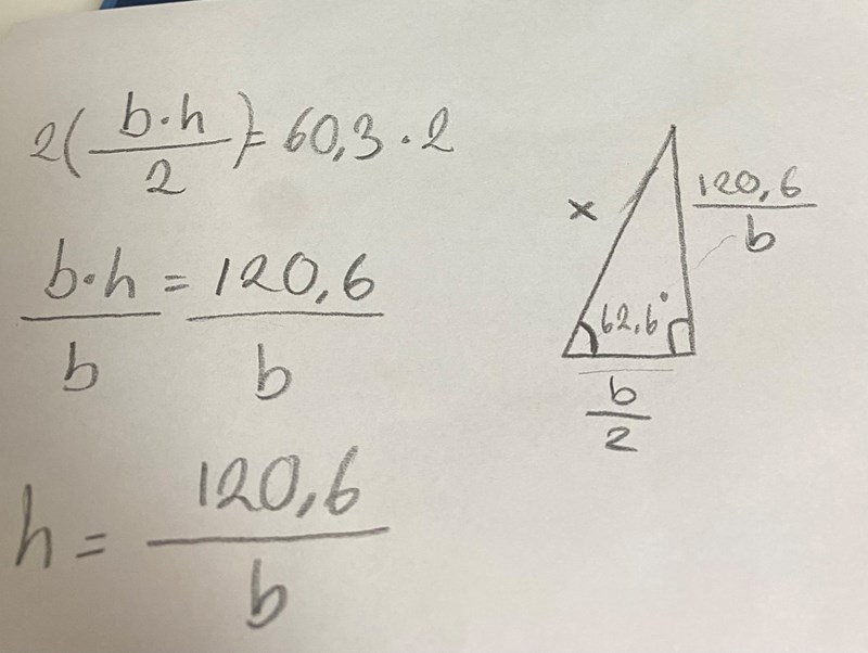 Laguna skrev:Du kan uttrycka både h och b i x med hjälp av sin och cos av vinkeln.
