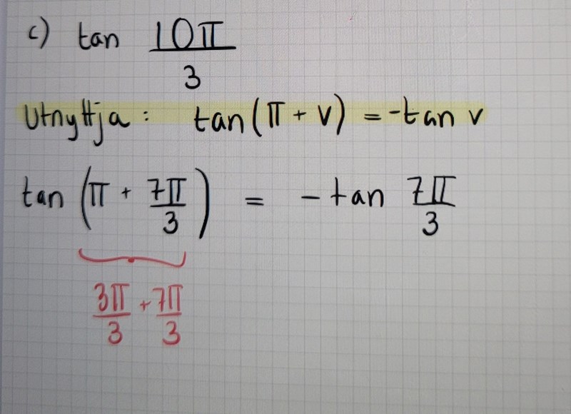 Yes, ser det. Tack, men hur kan jag skriva om tan 7π/3?