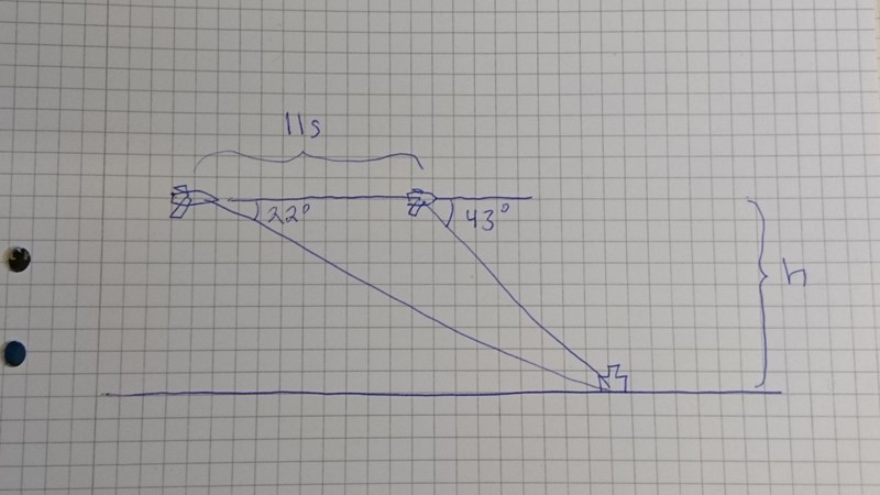 Däremot är det ju ologiskt att vinkeln till horisonten är konstant om jorden är platt, så det finns en motsägelse i själva uppgiften.