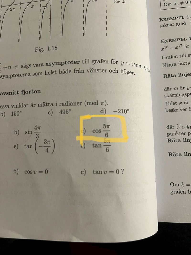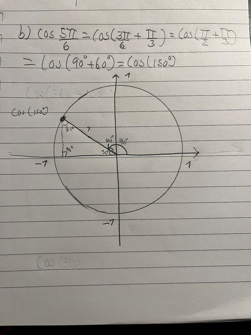 Hur ska jag fortsätta för att hitta cos (150 grader) ?