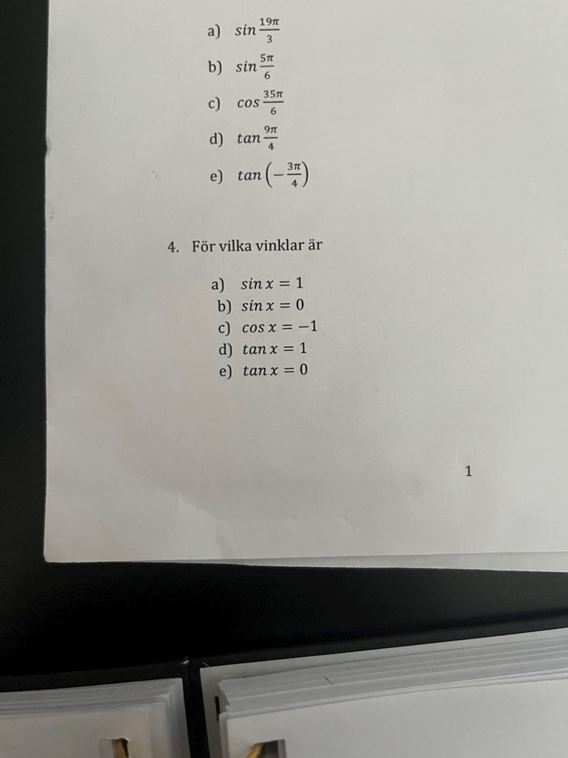 d) stämmer inte. Pröva med olina värden på n så ser du det. Förslag: Använd enhetscirkeln eller definitionen tan(x) = sin(x)/cos(x).