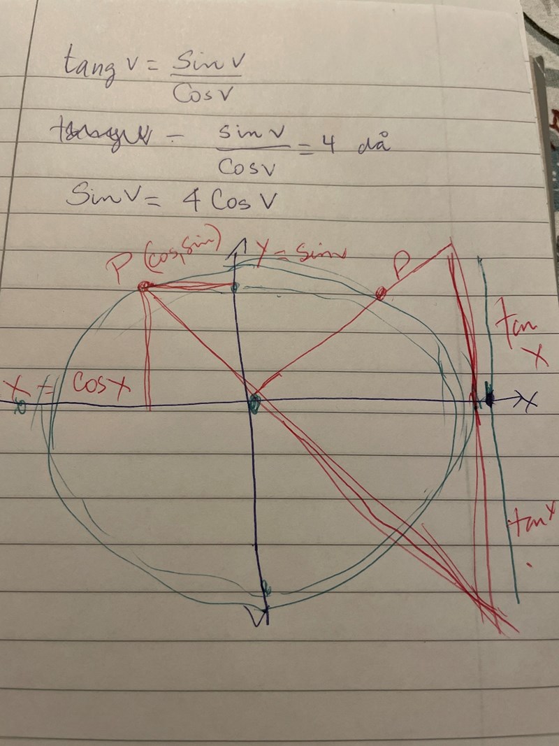 Du kan använda enhetscirkeln och på den markera de ungefärliga punkter där tan(v) = 4.