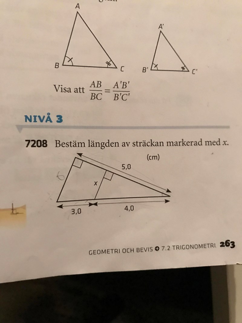 x/12 = 4/7 och bryter ut X får jag fram att X ska vara 6,8