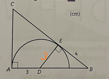 Radien på halvcirkeln är dessutom sträckan DE.