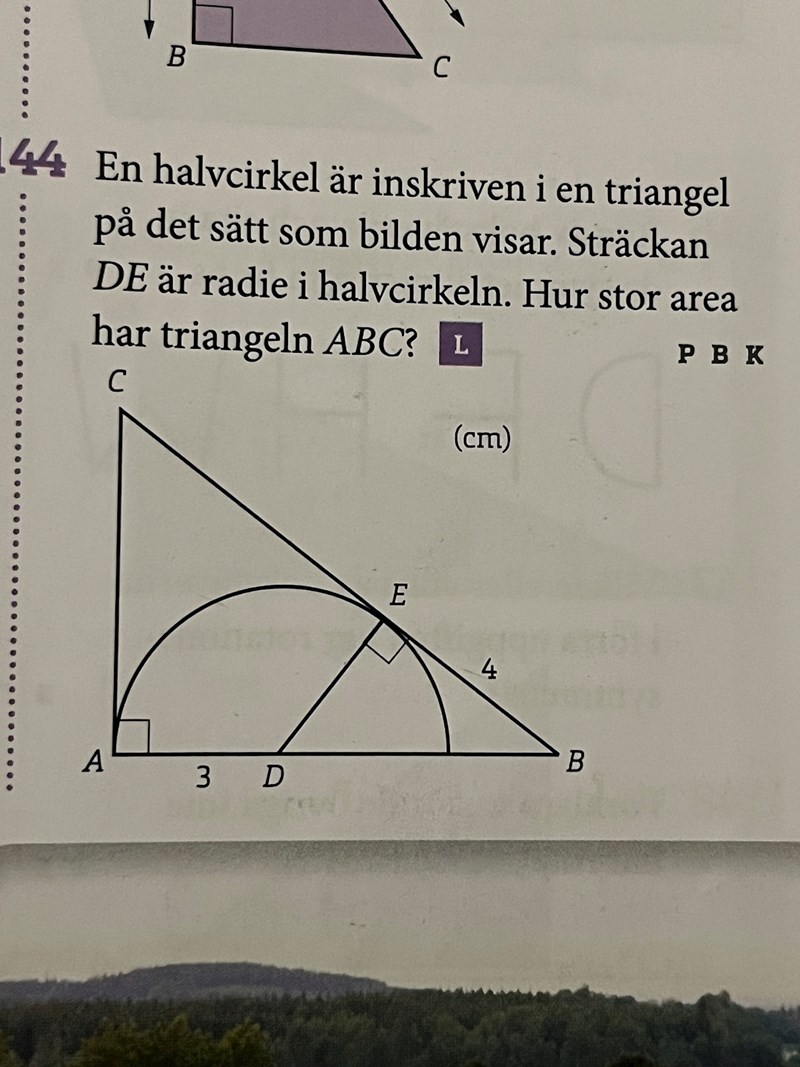 Den lilla △EDB har en rät vinkel i E och vinkeln B.