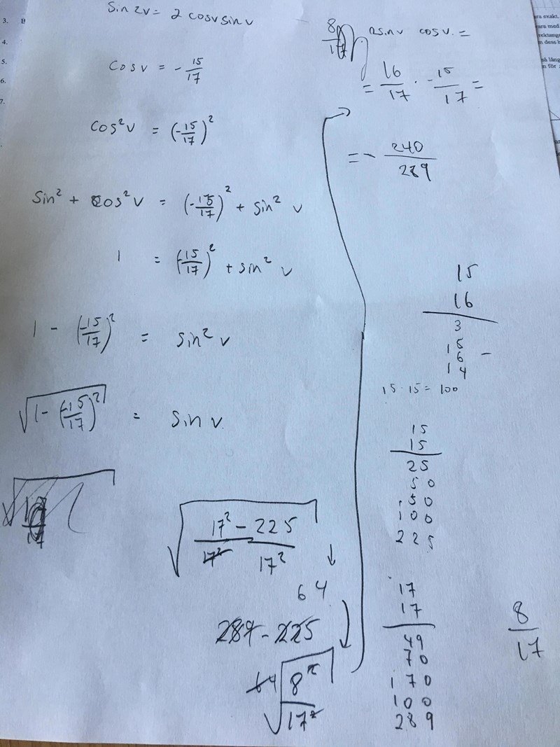 man kan göra det lätt genom cos 2v = 1 - 2sin^2v och sedan bryta ut sin v. Men det är alltid bra att komma fram till lösningen på flera sätt? Här användes inte trig 1 men kan man lösa uppgiften med bara trig 1 för att få någon förståelse för hur man kan använda sig av trig 1?