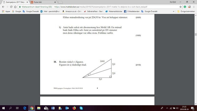 Okej men förutsätter inte det att jag vet hur stor andel triangeln vars vinkel jag söker utgör av den stora?