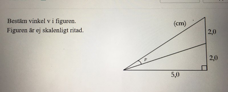 Vinkeln nedanför v är arctan(2/5), det stämmer. Är du säker på att v är lika stor?