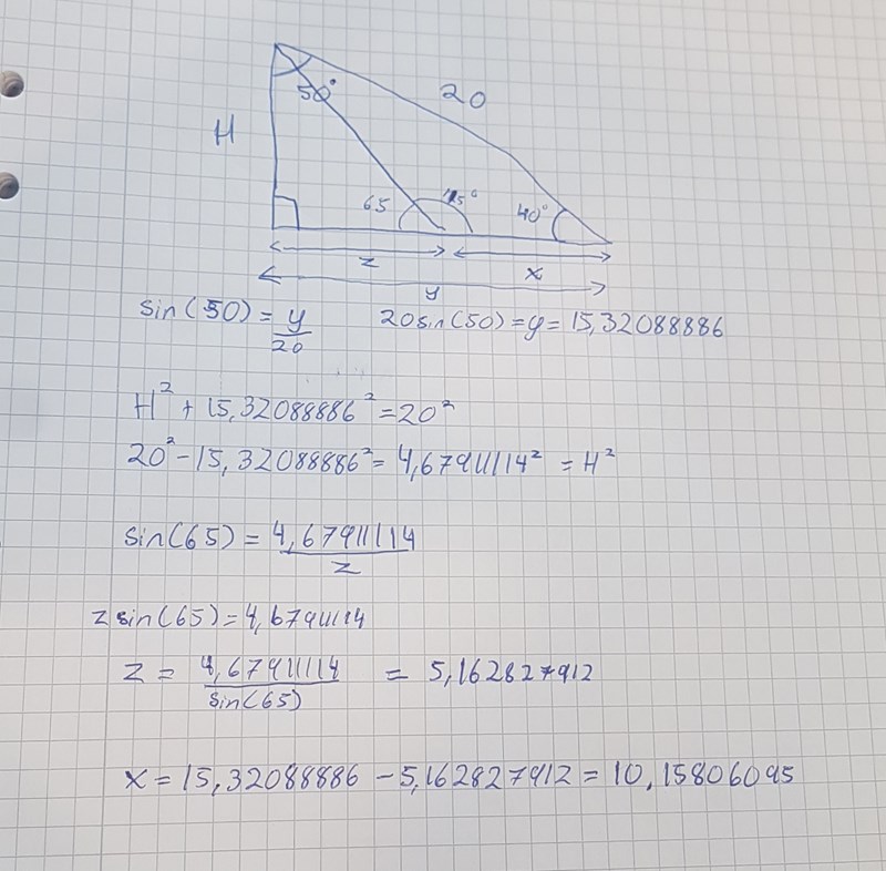 Dessutom skriver du att 20^2-15,..^2 = 4,67...^2 vilket också är fel
