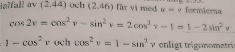 Jag ser nu att det inte funkar på min ekvation då jag har cos^2v och inte cos2v.