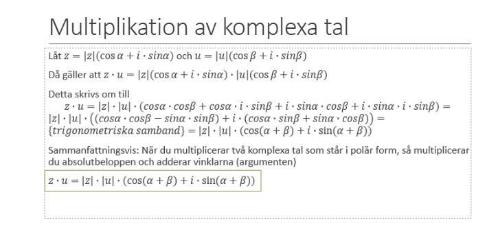 Jaha, okej tack, men då förstår jag inte hur härledningen till hur multiplikation med komplexa tal fungerar (bild visas här nedan).