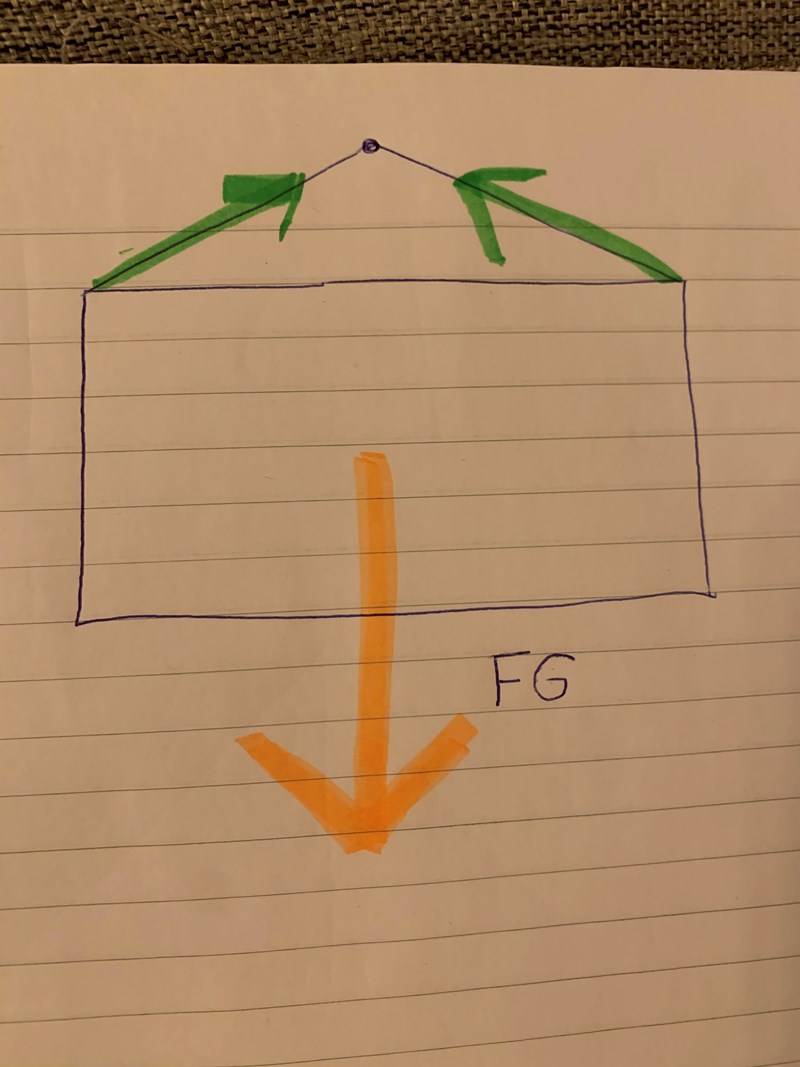 På din bild tycker jag att trådarnas kraft tar ut varandra men tyngdkraften är mycket större vilket ser ut som att tavlan skulle rasa ner på golvet? det måste ju finnas en kraft som håller upp tavlan uppåt för att motverka mg?