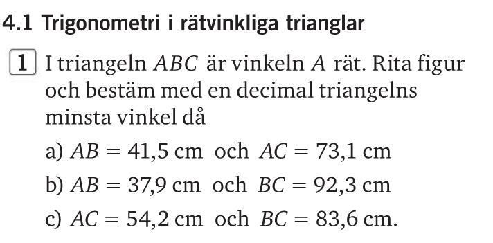 Du kan använda tangens för att beräkna den minsta vinkeln.