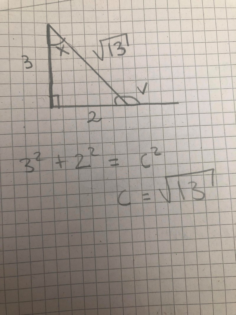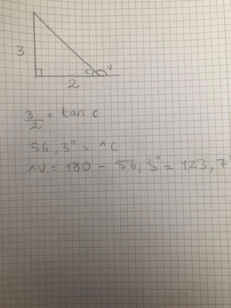 den är arctan (3/2). Men hur kommer jag vidare om jag ska hitta ett exakt värde för vinkel V?