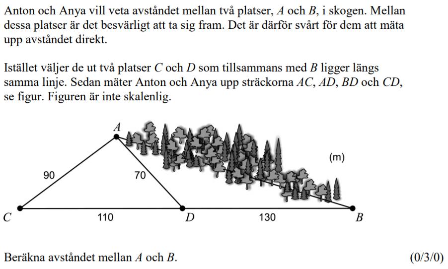Sedan cosinussatsen en gång till för att beräkna AB.