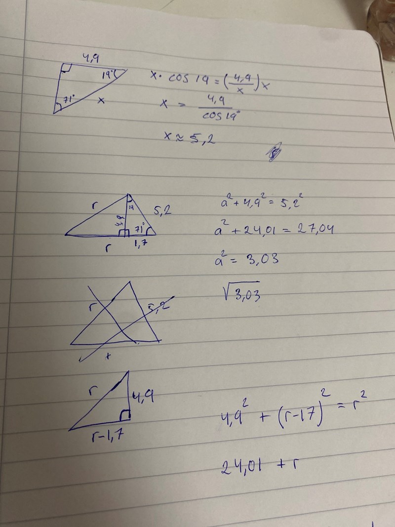 Åh såklart! Det hade varit mycket enklare att använda Pythagoras. dock känner jag tyvärr inte till cosinussatsen