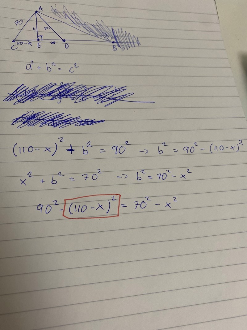 Ställ upp en ekvation med två uttryck för höjden (Pythagoras).