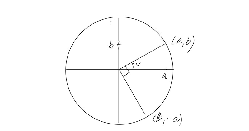 Hej! Ifall det finns en enhetscirkel med vinkel v markerad i första kvadranten vars koordinater är a;b och man markerar ut vinkeln v+270, hur kommer det sig att dess koordinater inte blir a;-b?
