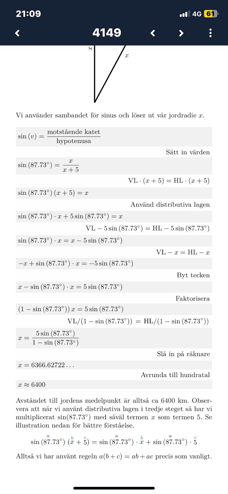 (Vi ska beräkna en sida i triangeln, inte någon vinkel.)