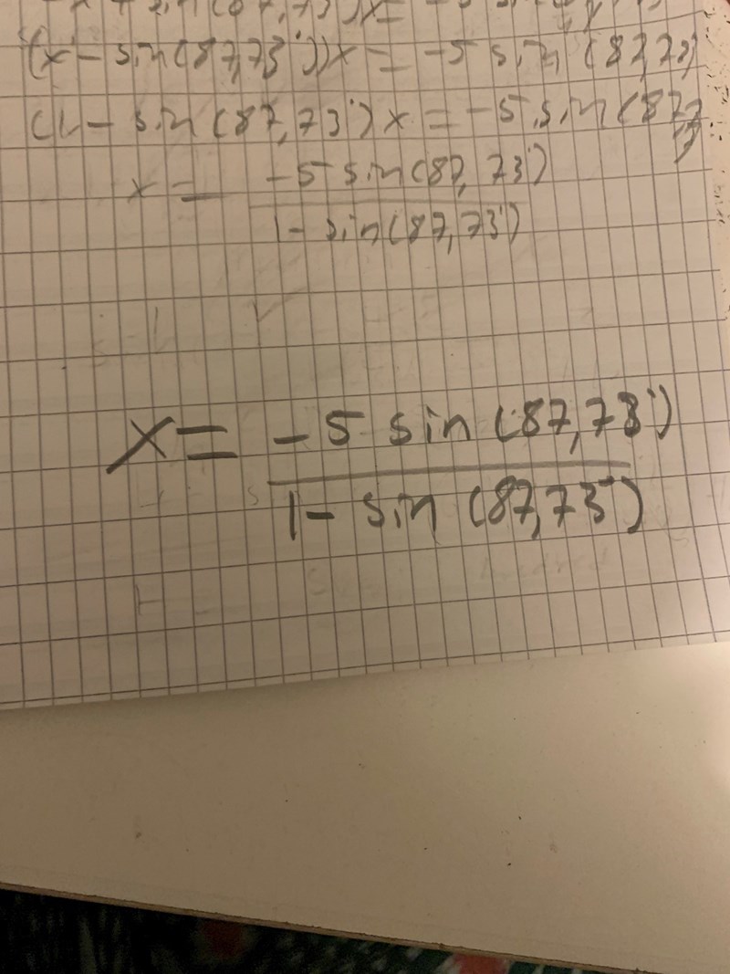cos( 90° - 87,73° ) = x/(x+5)