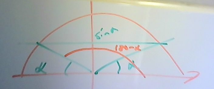 att sin(a) = sin(180-a) ser man dels i sitt formelblad men också (och bättre) i enhetscirkeln