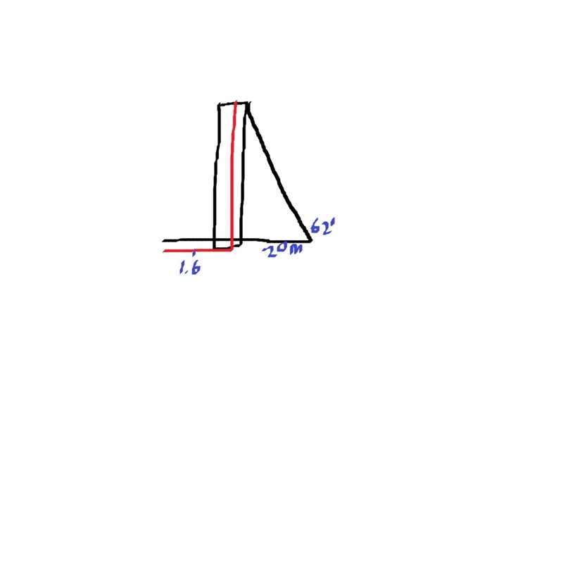 Men om jag i detta fall även behöver ta med att det är ett avstånd på 1,6 meter. Vart faller den in i beräkningen? Avståndet är fortfarande 20 meter och vinkeln 62 grader.