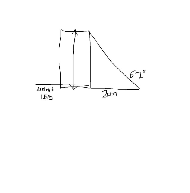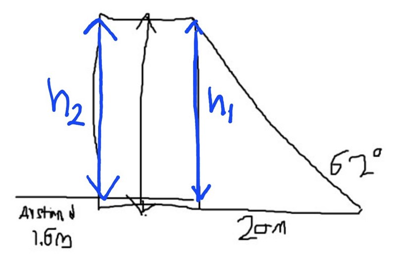 Svaret kommer då genom att jag tar: h=20tan(62grader)