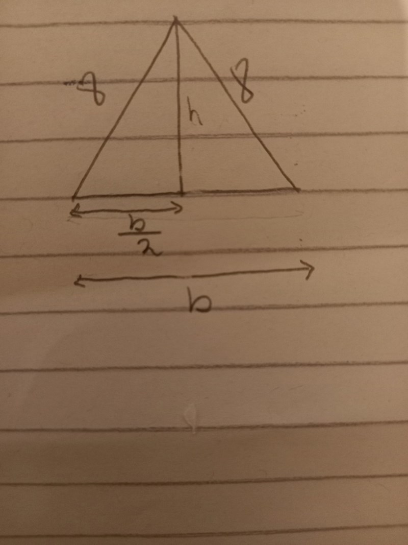 Hej! Den uppgiften kom på provet, då först delade jag femhörningen i 5 trianglar. Sedan började jag från Pythagoras sats. h2+(b/2)2 =82