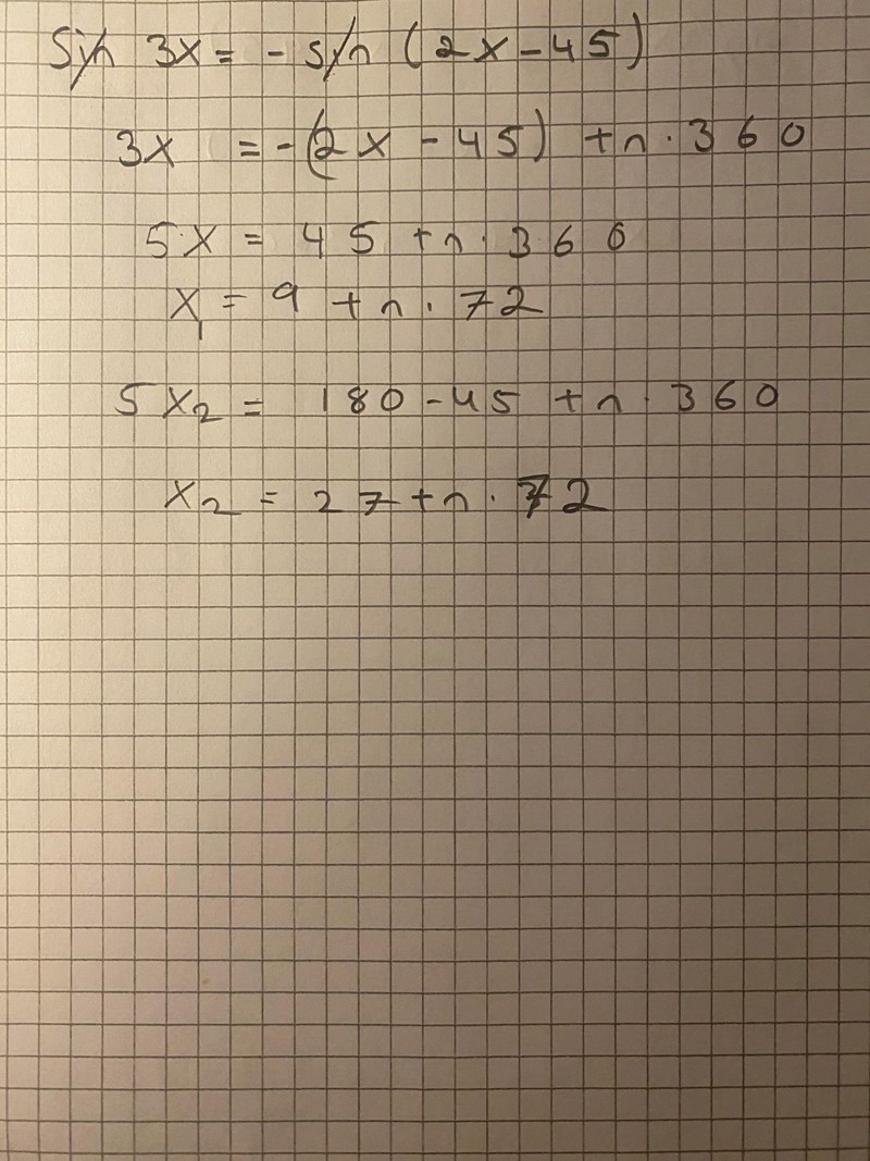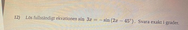 I ditt fall är u = 3x och v = 45° - 2x (där jag använde att -sin(v) = sin(-v))