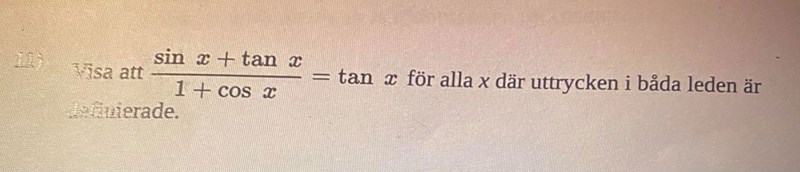 Laguna skrev:Börja med att skriva om tan(x) som sin(x)/cos(x).