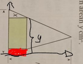 ''Den färgade rektangeln i figuren har höjden x cm och area y .