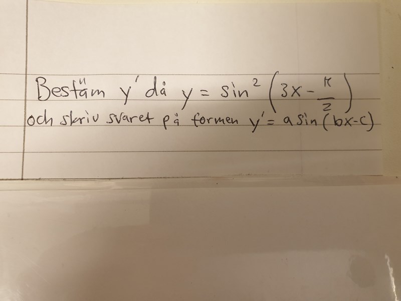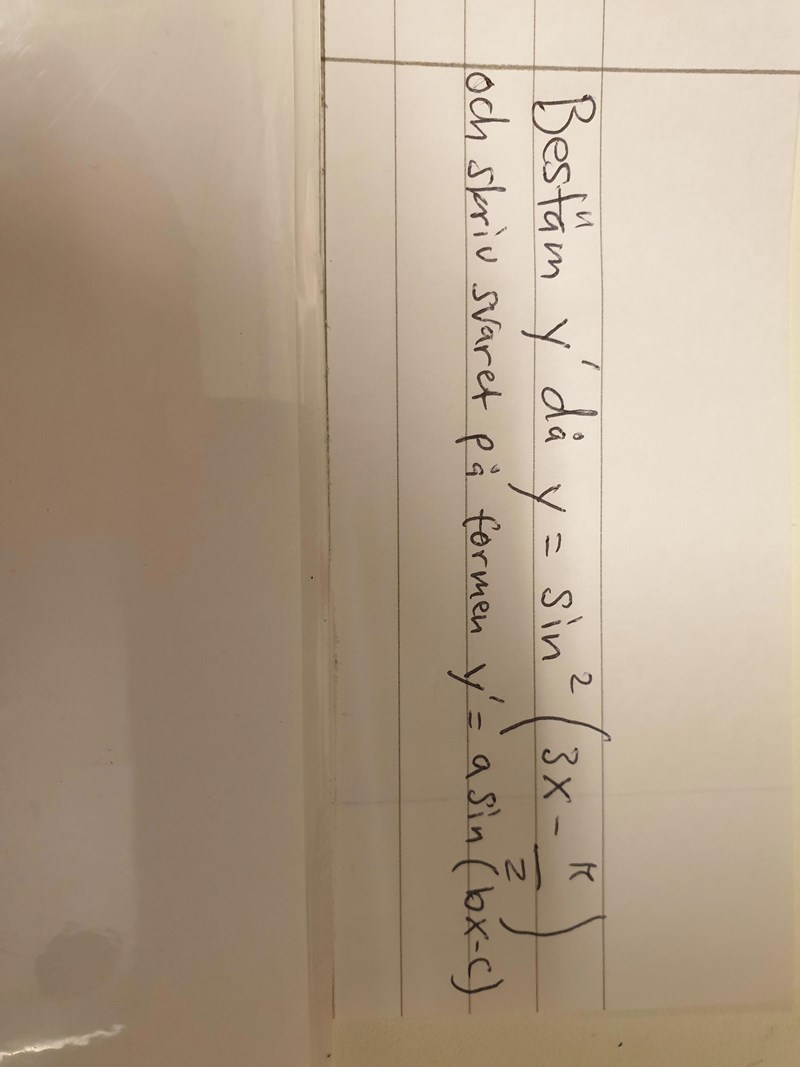 Bestäm och skriv svaret på formeln y' = asin (bx-c)