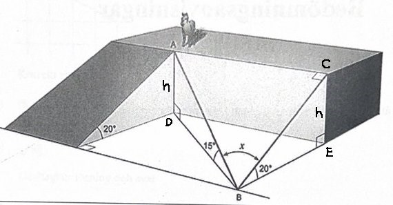 vinkel X kan jag sedan räkna ut med triangeln DEB, = arccos (186,603/137,37)