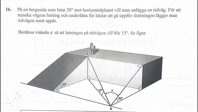 En tolkningsfråga vilken vinkel de menar, men som de ritat tycker jag att det är 41-gradersvinkeln man ska beräkna.