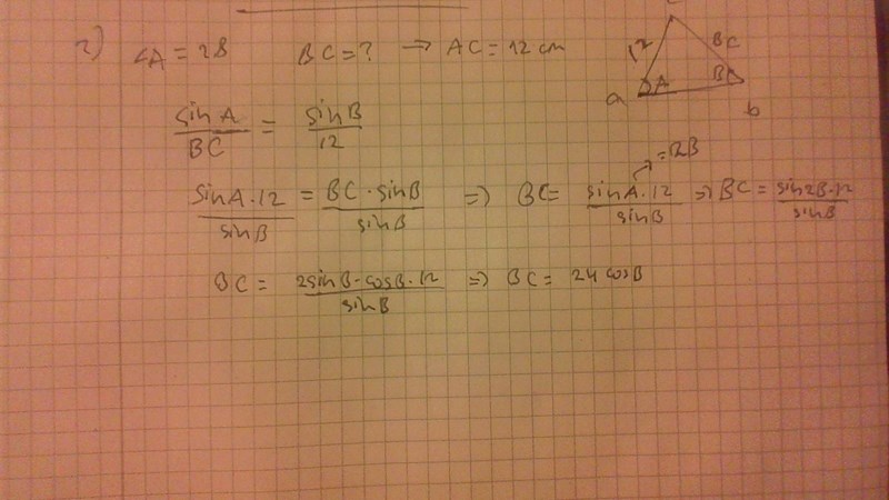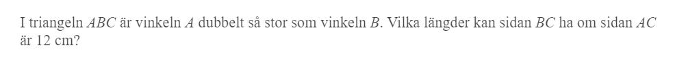 Jag tänker att längden måste vara mindre än 24cm eftersom största värdet som cosB anta är 1 vilket ger oss BC= 24cm. Tänker jag rätt här? Och hur hittar jag värdet där det måste vara större än?